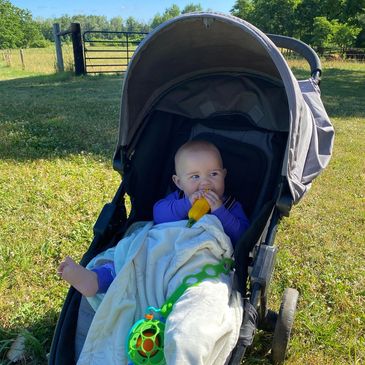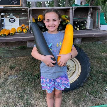 The youngest farm helper with a whole lot to learn and encounter. Most of the summer you will find Nora tagging along with Mom or playing with her buddy Echo!